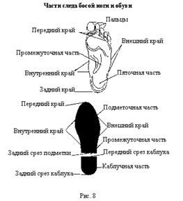 На местах происшествия нередко остаются следы ног (обуви) преступника. Они образуются при ходьбе, беге, прыжках, стоянии на месте. По этим следам можно выяснить путь движения лиц к месту происшествия, как они там передвигались, куда ушли, организовать преследование подозреваемых. Так, у хромого человека длина шага больной ноги всегда заметно короче, чем здоровой. По следам ног можно судить и об обстоятельствах совершения преступления, а также о некоторых особенностях субъекта, который их оставил, что необходимо для его розыска. По этим следам нетрудно отождествить человека (его обувь). Отражение индивидуальных признаков ног в следе зависит не только от особенностей подметки обуви, но и от качества поверхности следовоспринимающего объекта.