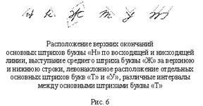 3) Особенности соотношений письменных знаков и их элементов по размеру, наклону и разгону (см. рис. 6).