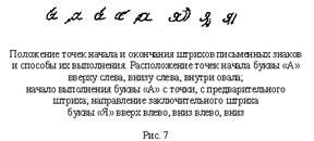 4) Положение точек начала и окончания штрихов письменных знаков и способы их выполнения (см. рис. 7).