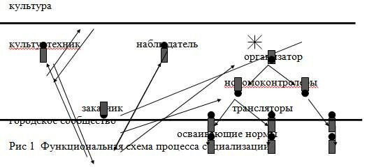 Процесс “социального научения” или социализации направлен на освоение тех культурных норм (деятельностных, технологических, поведенческих и т.д.), которые актуальны в данном социуме и направлены на поддержание его устойчивости. Можно сказать, что процесс социализации стягивает, связывает городскую культуру и социум. При этом нормы не только осваиваются и реализуются горожанами, но и воспроизводятся, поддерживаются в городе как через постоянное легализованное подключение к городской культуре, так и через общение людей между собой. Социализация - “это освоение человеком норм, культуры, знаний, всего того, что определяет характер деятельности данного общества” .