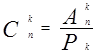 Составим из n элементов всевозможные сочетания по k элементов в каждом. Их будет Cnk . Внутри каждого сочетания, состоящего из k элементов, образуем всевозможные комбинации, учитывающие порядок следования в них элементов. Таких комбинаций будет Pk, т.к. мы в нашем сочетании образовываем перестановки. Всего различных комбинаций из n элементов по k в каждой, отличающихся друг от друга либо составом (элементами), либо порядком их следования, будет Cnk • Pk . Но такие комбинации называются размещениями. Таким образом, Ank = Cnk • Pk, тогда: