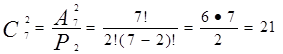 Решение: имеем сочетания без повторений из 7 элементов по 2; их число: