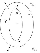 | Рассмотрим две замкнутых поверхности Рассмотрим две пространственных области. Одна из них лежит выше плоскости и ограничена верхними частями поверхностей и верхней частью плоскости. Вторая ограничена нижними частями поверхностей и нижней частью плоскости. В той и другой области поле соленоидально. Следовательно, |