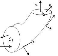 | Обозначим Sбок –боковую поверхность векторной трубки. На боковой поверхности направления нормали и векторного поля ортогональны, так как векторная трубка образована векторными линиями, а вектор поля направлен по касательной к векторной линии. Поэтому поток векторного поля через боковую поверхность векторной трубки равен нулю (ПSбок.= 0). Учитывая направления нормалей и вектора поля на сечениях векторной трубки S1 и S2, а также соленодальность поля, получим