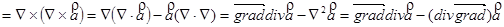 Три остальных векторных поля связаны друг с другом. Это становится ясным, если рассматривать векторные операции с оператором Гамильтона «набла» аналогично обычным векторным операциям. Однако, эти аналогии не совсем верны, см. подробнее о свойствах оператора «набла» выпуск 7 учебника.