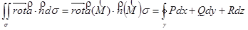 Правая часть формулы – это поверхностная плотность циркуляции векторного поля (энергии в точке M вращения векторного поля или работы векторного поля при вращении вокруг некоторого направления, определяемого вектором