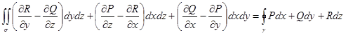 | Как и формула Остроградского – Гаусса, формула Стокса состоит из трех независимых частей (в силу произвольности компонент векторного поля). Докажем одну из этих частей, остальные формулы доказываются аналогично. Докажем Предположим, что поверхность |