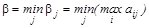 Аналогично определяется наилучшая стратегия второго игрока. Игрок В при выборе стратегии Вj, в худшем случае получит проигрыш bj = max aij. Он выбирает стратегию Bjопт, при которой его проигрыш будет минимальным и составит
