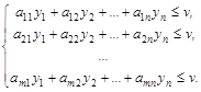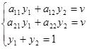 (y1, y2, ..., yn) игрока В должна минимизировать величину v, следовательно, функция