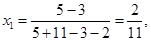 Цену игры находим, подставляя значения х1 и х2 в одно из равенств (1)