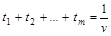 По условию x1 + x2 + … +xm = 1. Разделим обе части этого равенства на v.