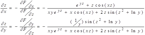 есть обычная частная производная в точке, и мы получаем формулы для частных производных неявной функции: