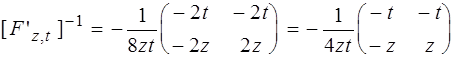 Если же мы будем вычислять матрицу Якоби обратной функции непосредственно, то получим:
