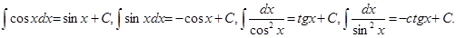 Для того, чтобы вычислить интеграл от функции, проще всего «угадать» первообразную для этой функции по таблице для производных, переписав эту таблицу в обратном порядке. Запишем интегралы для основных элементарных функций.
