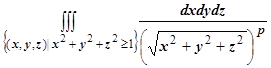 14.3.2. Несобственные интегралы от неограниченной функции. Структура множества точек, в окрестностях которых функция двух, трех и большего числа переменных может оказаться неограниченной, может быть достаточно сложной. Так, функция трёх переменных может быть неограниченной в окрестности одной точки