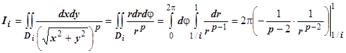 - кратного интеграла по неограниченной области такая же, как и для несобственного определённого интеграла: мы ограничиваем область, вычисляем интеграл по этой ограниченной области, и, затем, расширяя область интегрирования до исходной, смотрим, существует или нет конечный предел значения интеграла. Рассмотрим это более подробно для случая двойного интеграла.