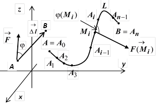 ; при этом сила может меняться от точки к точке. Требуется найти работу, которая совершается силой.