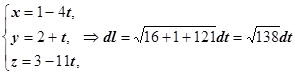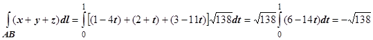 Здесь прямого параметрического задания кривой нет, поэтому на АВ необходимо ввести параметр. Параметрические уравнения прямой имеют вид