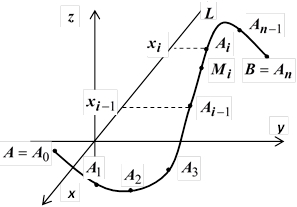 16.3.2.1. Определение криволинейного интеграла первого рода. Пусть в пространстве переменных x,y,z задана кусочно-гладкая кривая