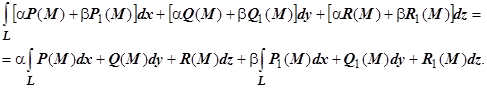16.3.2.2. Свойства криволинейного интеграла первого рода. Для этого интеграла имеют место все шесть свойств, справедливых для определённого, двойного, тройного интеграла, от линейности до теоремы о среднем. Сформулировать и доказать их самостоятельно. Однако для этого интеграла справедливо и седьмое, персональное свойство: