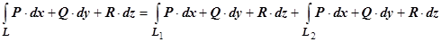 Теорема существования. Если функция f(x,y,z) непрерывна на кусочно-гладкой кривой