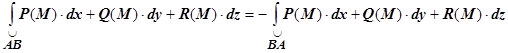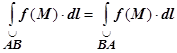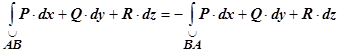 между силой и кривой входит в подынтегральную функцию в явном виде), в то время как криволинейный интеграл второго рода меняет знак при изменении направления прохождения кривой: