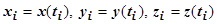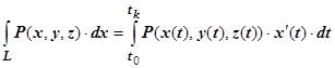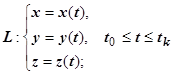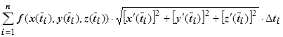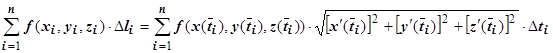 , на которой определена функция f(x,y,z). Разобьём кривую точками