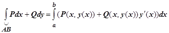 Доказательство. Интегральные суммы для интегралов, стоящих в правой и левой частях этого равенства, при любом разбиении кривой и выборе точек