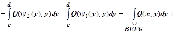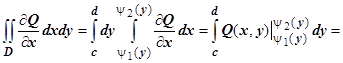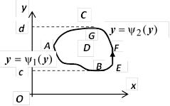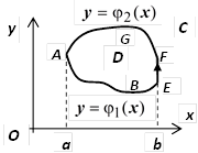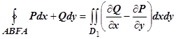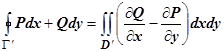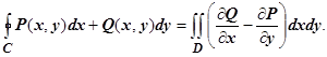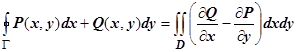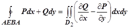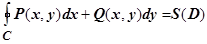 - площадь области D). Таким образом, площадь области можно выразить через криволинейный интеграл второго рода по границе этой области. В качестве функций Р и Q можно взять любые непрерывно дифференцируемые функции, такие что