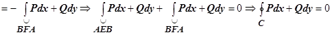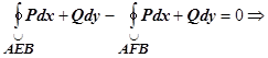 не зависел от формы пути, соединяющего точки А и В, необходимо и достаточно, чтобы интеграл по любому замкнутому контуру был равен нулю.