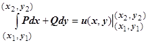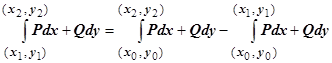 является аналогом формулы Ньютона-Лейбница для двухмерного случая; ещё раз отметим, что она имеет место в случае, когда выполняются условия независимости интеграла от формы пути.