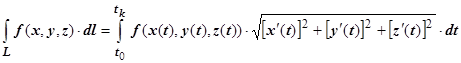 , а значение этого предела называется криволинейным интегралом первого рода, или криволинейным интегралом по длине дуги от функции f(x,y,z) по кривой