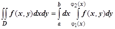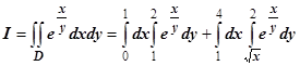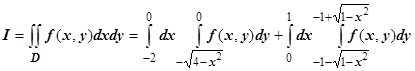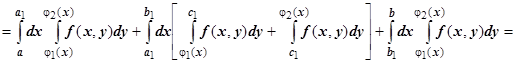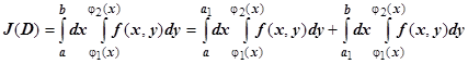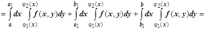 , поэтому первый из повторных интегралов будет содержать два слагаемых: