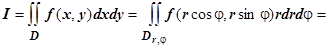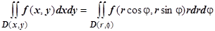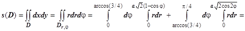 можно вычислить, но это достаточно трудоёмко. Попробуем перейти к полярным координатам (это имеет смысл, так как и подынтегральная функция, и кривая, ограничивающая D зависят от выражения