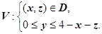 Решение. Тело изображено на рисунке справа. Перебором возможностей убеждаемся, что проще всего описать это тело, если отправляться от его проекции на ось Oxz:
