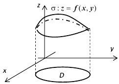 , однозначно проектирующаяся в область D на плоскости Оху. Пусть эта поверхность задаётся уравнением