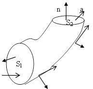 | Обозначим Sбок –боковую поверхность векторной трубки. На боковой поверхности направления нормали и векторного поля ортогональны, так как векторная трубка образована векторными линиями, а вектор поля направлен по касательной к векторной линии. Поэтому поток векторного поля через боковую поверхность векторной трубки равен нулю (ПSбок.= 0). Учитывая направления нормалей и вектора поля на сечениях векторной трубки S1 и S2, а также соленодальность поля, получим