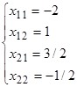 x11= -2; x12= 1; x21= 3/2; x22= -1/2