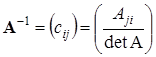 Последняя формула означает, что в i-й строке и j-м столбце обратной матрицы располагается алгебраическое дополнение элемента, стоящего в j-й строке и в i-м столбце исходной матрицы, деленное на определитель исходной матрицы.