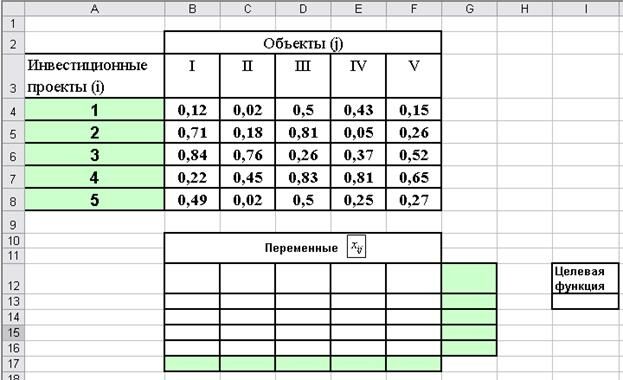 - искомые распределения инвестиций по объектам.