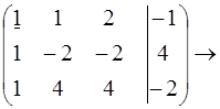 | -2 | 1 | 4 | 4 | из 3-й строки вычитается 1-я, умноженная на 1 |