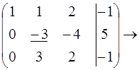 | -1 | 1 | 1 | 2 | а11=1 – ключевой элемент: х1 исключается с помощью 1-го уравнения |