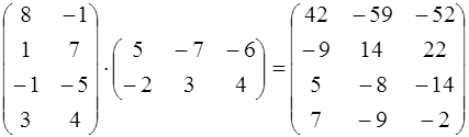 Правило: «строка 1-й матрицы на столбец 2-й матрицы по формуле скалярного произведения». Число столбцов 1-й матрицы должно быть равно числу строк 2-й.