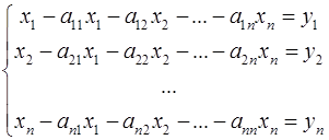 - внутренние затраты, которые зависят от валовой продукции линейно: z1=a11x1+a12x2+…+a1nxn и т.д.