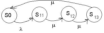 Переход из  в  осуществляется под воздействием пуассоновского потока, а из  в - потока Эрланга.
