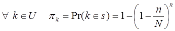 При простом случайном отборе с возвращением для вероятностей включения единиц в выборку имеем