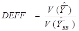 Эффектом плана выборки (дизайн эффектом) называется отношение дисперсии оценки, соответствующей примененному сложному плану, к дисперсии оценки простого случайного отбора без возвращения: