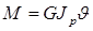 С. Уравнение кручения бруса с круглым поперечным сечением , где М - крутящий момент; G - момент сдвига; Jp - полярный момент инерции сечения;  - относительный угол закручивания.