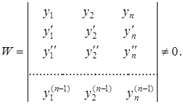 N линейно независимых частных решений линейного однородного дифференциального уравнения n-го порядка образуют фундаментальную систему решений этого уравнения.