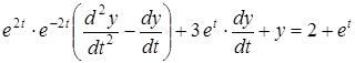 Однородное линейное уравнение, соответствующее уравнению (2.66), есть уравнение Эйлера. Применим замену по формулам (2.64), (2.65). Тогда